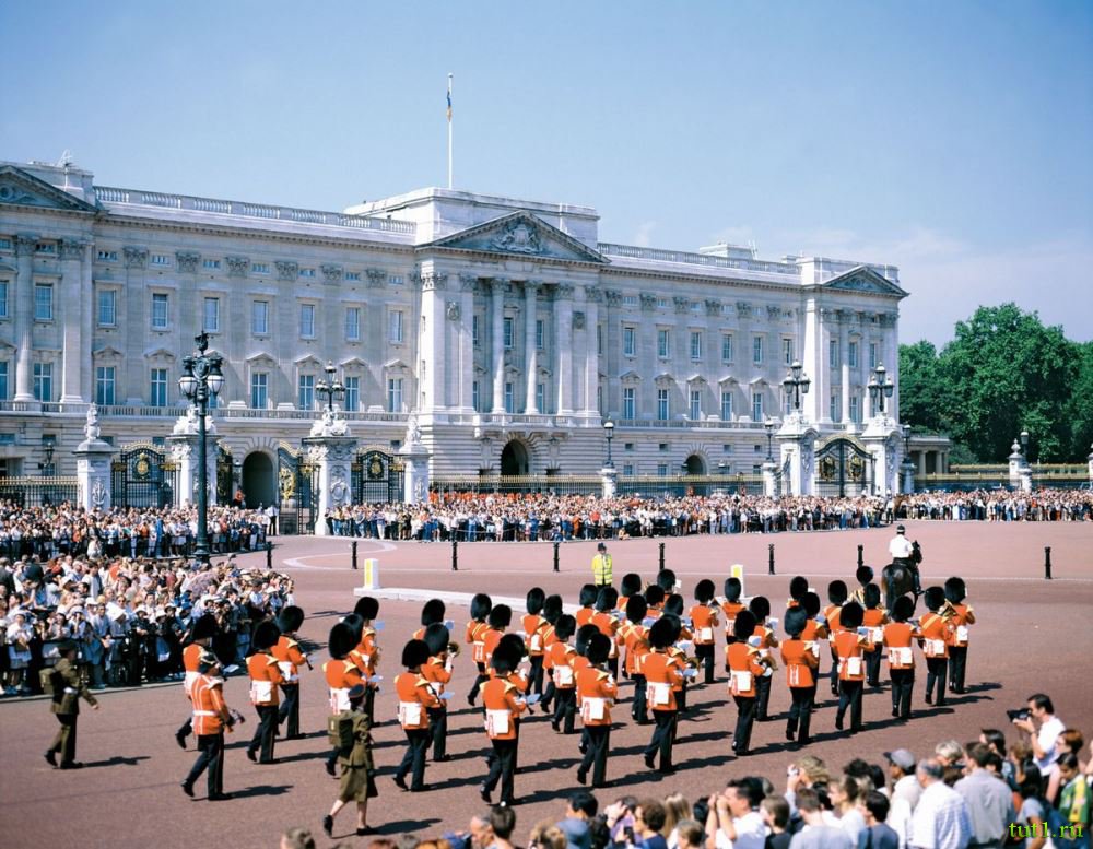Букингемский дворец является официальной резиденцией британских монархов, в которой сегодня проживает королева Елизавета II. Кроме этого, это еще и главный дворец страны. История Букингемского дворца начинается в 1703 году, когда его начали строить в качестве Букингем-хауса для герцога Букингемского. В 1762 году, после приобретения дворца королем Георгом III, над ним усердно трудились архитекторы, которые достроили к основному зданию еще три подобных. В 1837 году, когда престол вступила королева Виктория, дворец официально объявили главной резиденцией британских монархов. С тех пор здесь живут монархи, а ежедневная церемония смены караула (которая происходит в 11:30), собирает огромное число туристов.