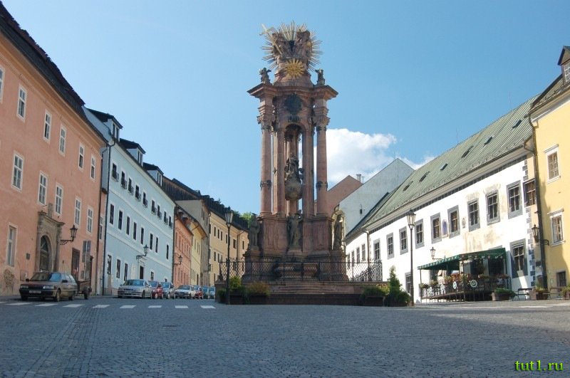 Площадь Святой Троицы, заложенная в XVI веке, являет собой «сердце» Банска Штьявницы. Её форма определяется зданием городской ратуши и церковью Святой Екатерины. Вокруг площади возвышаются роскошные особняки, в центре находится колонна, посвященная Святой Троице. На ней изображены фигуры семи святых защитников города, а также покровителей рудокопов.