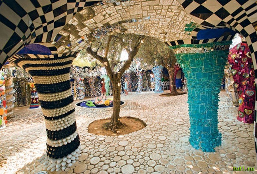В парке Вы сможете найти огромное количество разнообразных инсталляций и фонтанов, которые оформлены в виде удивительных узоров из керамической мозаики. Каждый элемент узора настолько неповторим, что фантазией автора можно только восхищаться. На территории данного парка Вы сможете посетить Дом-музей Гауди, в котором находятся образцы мебели, созданной руками знаменитого архитектора (к примеру, мебель из дома Мила и дома Бальо). Дом-музей был открыт Обществом друзей архитектора в 1963 году и расположен в бывшем особняке Гауди.