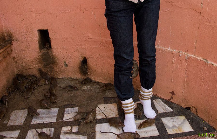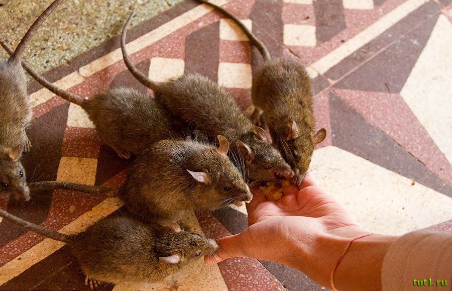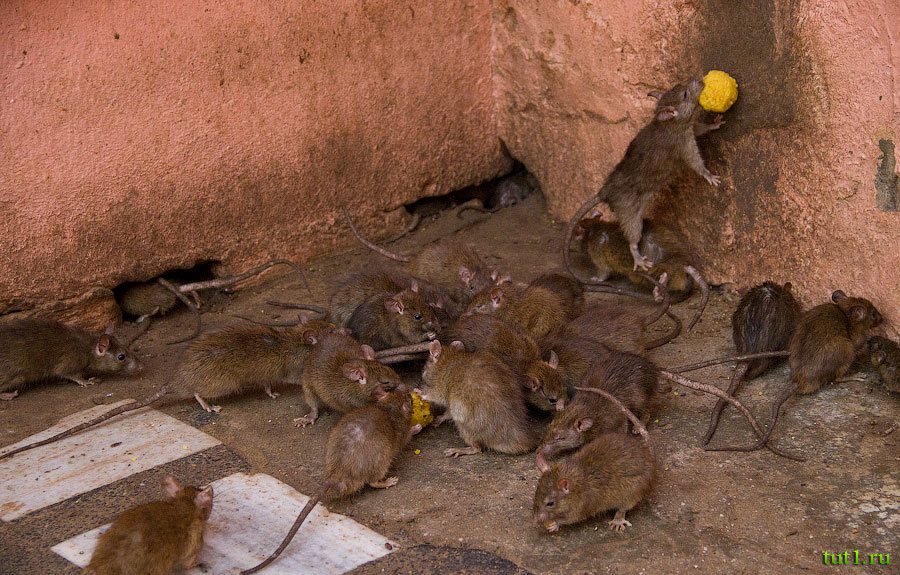 Храм, посвященный богине Карни Мата ― уникальный храм Индии. В этом храме обитают 20 000 священных крыс. В этих местах когда-то жила богиня Карни Мата. В XV веке ужасная лихорадка истребила всех детей. Родители обратились к Карни Мата с просьбой оживить ребятишек. Богиня согласилась, но условия сделки оказались очень жестокими ― дети перевоплотятся в грызунов. "Ну, не в тараканов же, в конце концов" ― подумали родители и согласились.