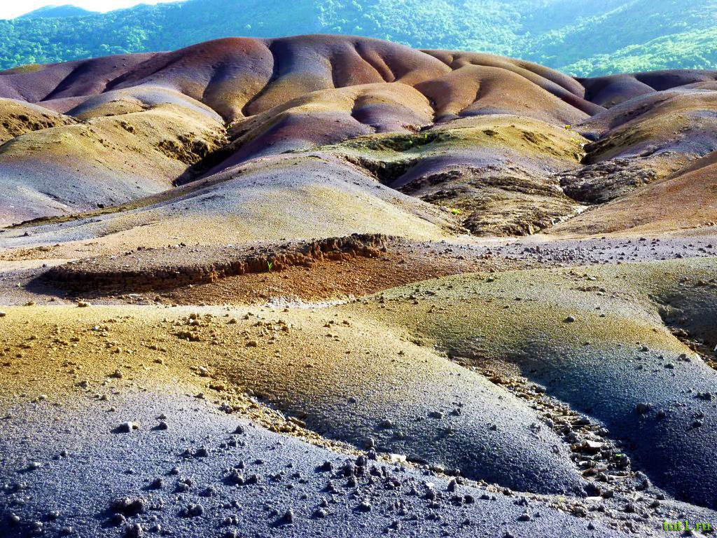 Есть у острова еще один символ — семицветные пески Шамарель. Они так же бесконечно тиражированы в сувенирных баночках, коробочках, стаканчиках и колбочках. Возле деревни Шамарель на юго-западе острова есть удивительно красивый уникальный участок семицветной земли.