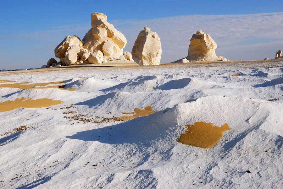 Египет одно из самых экономичных и распространенных мест отдыха для жителей нашей страны. Кажется, что он уже изучен вдоль и поперек. Но не тут-то было! Здесь есть места, которые практически не видели человека. А их внеземные виды поражают воображение до глубины души. Как Вы могли догадаться, за такими прекрасными пейзажами нужно ехать за сотни километров от ближайших городов. Своими невероятными красотами отличается Белая пустыня в Египте. Из названия можно догадаться, что пески тут белоснежные, с примесью меловой и карстовой породы.