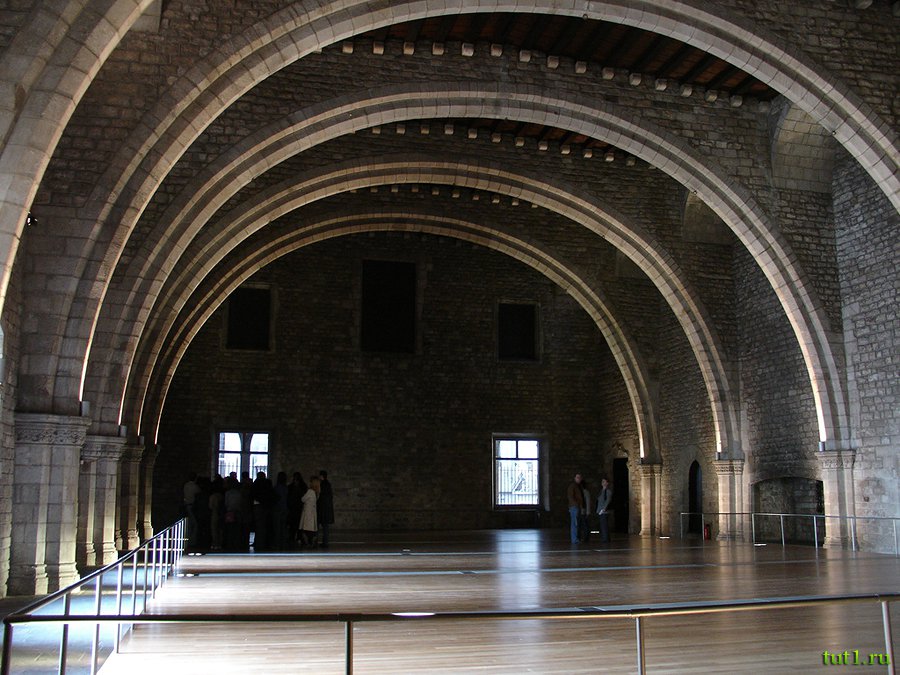 Каталонский актовый зал был построен по приказу Питера IV. Арки этого зала поддерживают дощатый потолок. Изначально здесь стояло 19 гипсовых статуй, но они, вместе с различными картинами, исчезли во времена беспорядков и интервенции. В актовом зале дворца происходили многие исторические события испанской и каталонской истории между 1372-м и 1935-м годами. Так же, частью Королевского дворца является капелла Святой Агаты. В своё время, купол шириной 17 метров, работы Гильома Карбонелла, был, по истине, архитектурным достижением. С пятиэтажной сторожевой башни видно весь готический район.